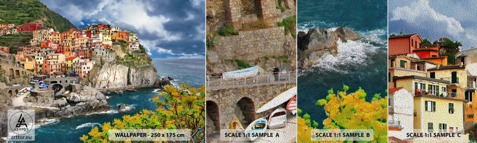 Campione di Fotomurale Premium Sand - Aggrappate alla roccia - Paesaggio, Architettura, Italia - 100x30 cm
