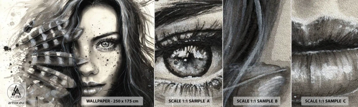Campione di Fotomurale Premium Sand - Bellezza selvaggia - Donna, Piume di uccelli, Grafica - 100x30 cm