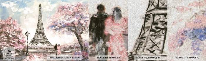 Campione di Fotomurale Premium Sand - Passeggiata a Parigi in aprile - Città, Torre Eiffel, Vicolo del parco - 100x30 cm
