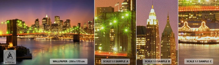 Campione di Fotomurale Premium Sand - Qui la luce non si spegne mai - Città, New York, ponte di Brooklyn - 100x30 cm