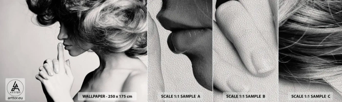 Campione di Fotomurale Premium Sand - Ascoltando se stessa - Donna, Modello, Volto di donna - 100x30 cm