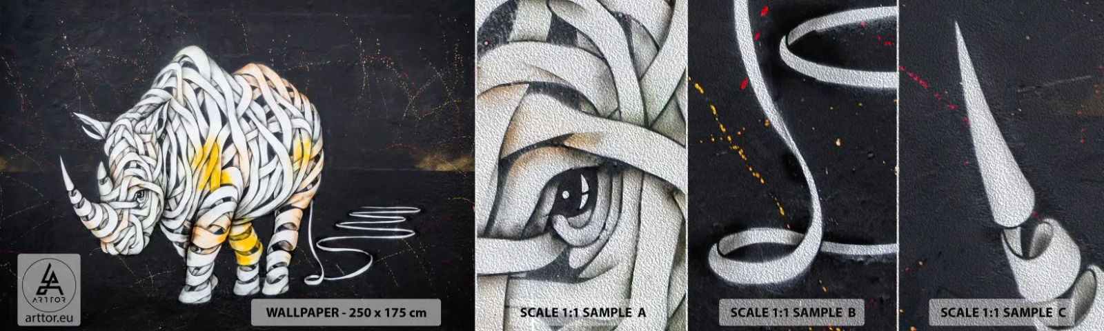 Campione di Fotomurale Premium Sand - La pelle dura è un mito - Astrazione, Rinoceronte, Astrazione - 100x30 cm