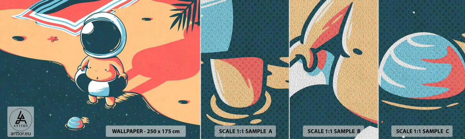 Campione di Fotomurale Premium Sand - Da un'altra prospettiva - Astrazione, Spiaggia, Astronauta - 100x30 cm