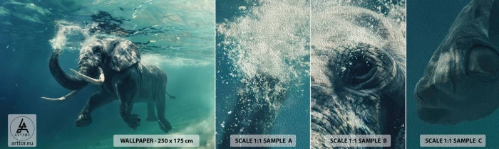 Campione di Fotomurale Premium Sand - Tutti amano nuotare - Astrazione, Elefante, Pezzo - 100x30 cm
