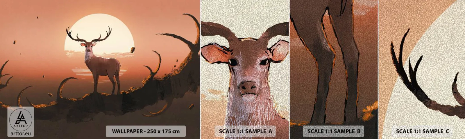 Campione di Fotomurale Premium Sand - Questa notte è diversa dalle altre - Astrazione, Cervo, Pezzo - 100x30 cm