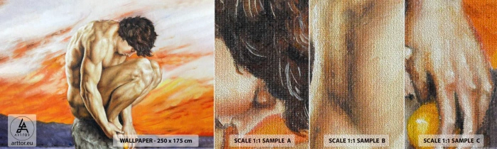 Campione di Fotomurale Premium Sand - Immerso in se stesso - Corpo, Uomo, Statua - 100x30 cm