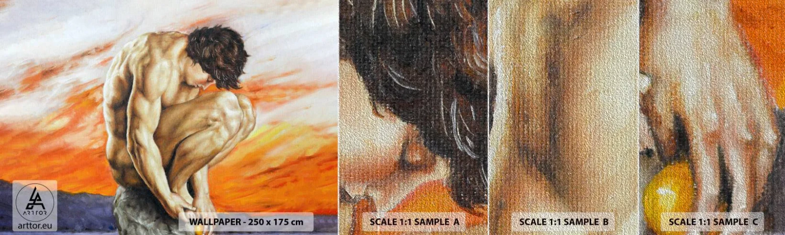 Ordina una carta da parati fotografica ARTTOR su misura e goditi una perfetta aderenza alla tua parete. Con questa opzione, risparmierai denaro evitando di acquistare materiale in eccesso e il motivo si integrerà perfettamente con lo spazio che desideri decorare. Personalizza la carta da parati fotografica e crea un arredamento unico!