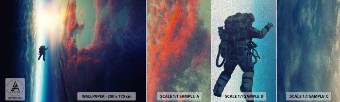 Campione di Fotomurale Premium Sand - Affrontando l'universo - Astrazione, Astronauta, Cosmo - 100x30 cm