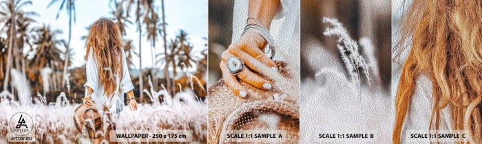 Campione di Fotomurale Premium Sand - Nata dalla lanugine dell'erba - Donna, Vintage ▾, Boho - 100x30 cm