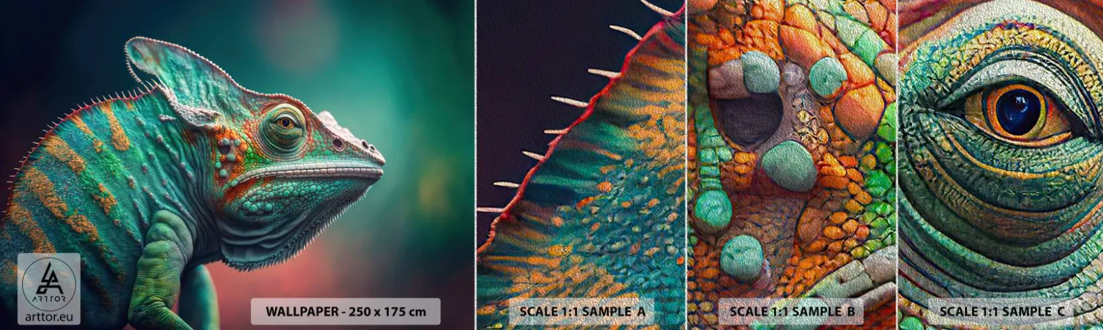 Campione di Fotomurale Premium Sand - Mi vedi? Non va bene... - Camaleonte, Animali, Rettile - 100x30 cm