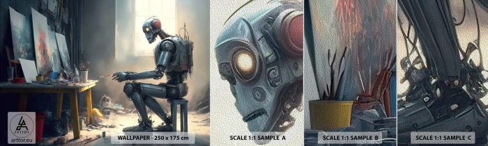 Campione di Fotomurale Premium Sand - Atto creativo - Pezzo, Pittura, Robot - 100x30 cm