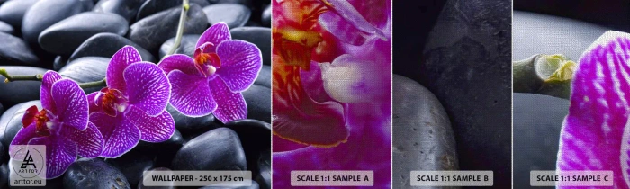 Campione di Fotomurale Premium Canvas - Le pietre brillano di ammirazione - Fiori, Pietre, Orchidea - 100x30 cm