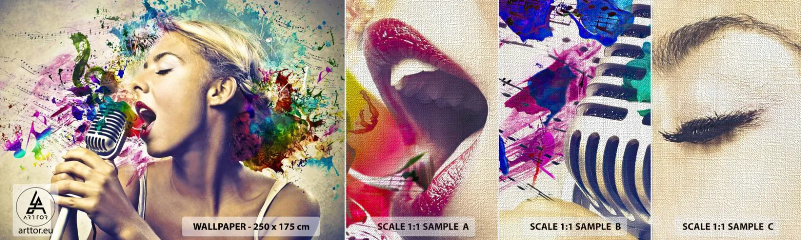 Campione di Fotomurale Premium Canvas - Dipingere il mondo con la voce - Donna, Musica, 3D - 100x30 cm