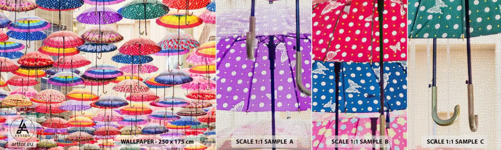 Campione di Fotomurale Premium Canvas - Prato cittadino - Città, Ombrelli colorati, Pezzo - 100x30 cm