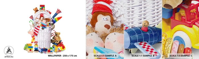 Campione di Fotomurale Premium Canvas - I tesori del bambini - Giocattoli, Per bambini, La stanza dei bambini - 100x30 cm