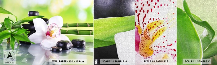 Campione di Fotomurale Premium Canvas - Freschezza rinfrescante - Bambù, Fiore, Orchidea - 100x30 cm