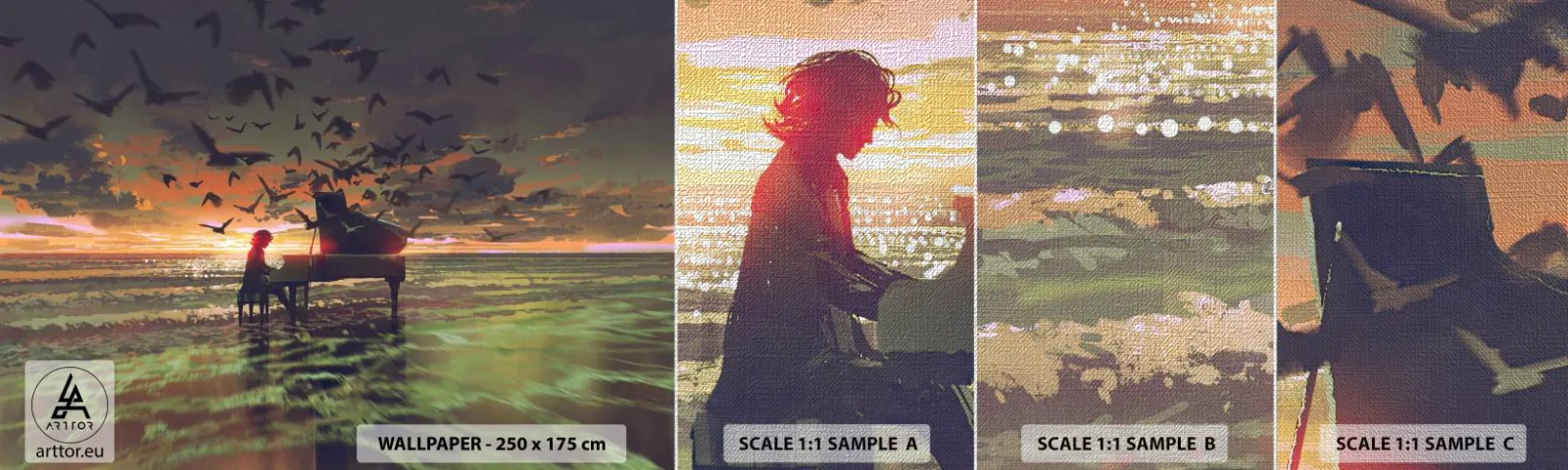 Esempio di carta da parati fotografica TELA PREMIUM È un'ottima opportunità per toccare con mano lo spessore del materiale e constatarne la resistenza. In questo modo, sarai sicuro che il materiale scelto si integrerà perfettamente con i tuoi interni e soddisferà tutte le tue aspettative in termini di estetica e funzionalità.