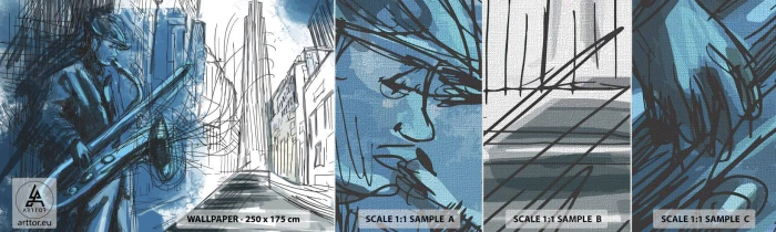 Campione di Fotomurale Premium Canvas - Rapsodia urbana - Sassofono, Jazz, Musica - 100x30 cm