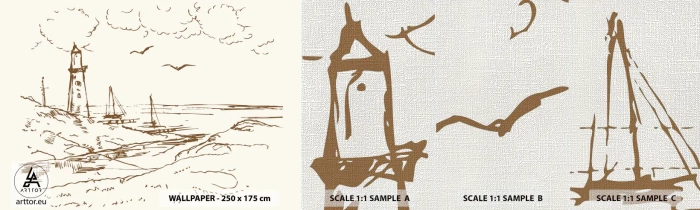 Campione di Fotomurale Premium Canvas - Schizzo dei ricordi d'estate - Grafica, Costa, Faro - 100x30 cm