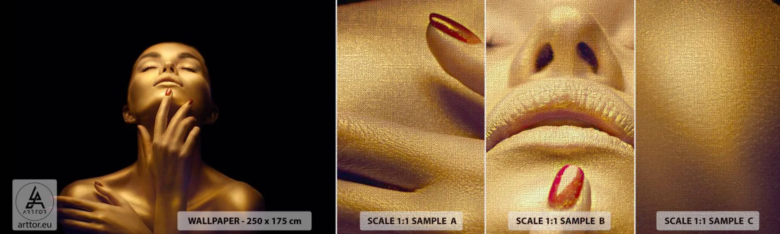 Campione di Fotomurale Premium Canvas - Come seta d'oro - Donna, Volto di donna, Corpo - 100x30 cm
