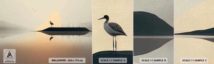 Campione di Fotomurale Premium Canvas - Il signore del lago - Uccello, Paesaggio, Minimalismo - 100x30 cm