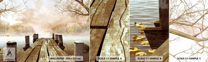 Campione di Fotomurale Adesivo Deluxe Sticker - La mite melanconia autunnale - Paesaggio, Lago, Ponte di Legno - 100x30 cm