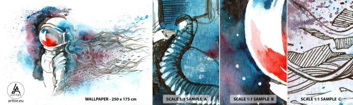 Campione di Fotomurale Adesivo Deluxe Sticker - Da solo nel cosmo - Astronauta, Cosmonauta, Astrazione - 100x30 cm