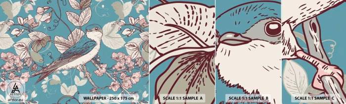 • Astratto, Rondine, Uccello, Botanica, Fiori, Animali, Per l'ufficio, Per lo studio, Per la sala da pranzo, Per l'ingresso, Per il soggiorno, Per la camera da letto, Blu