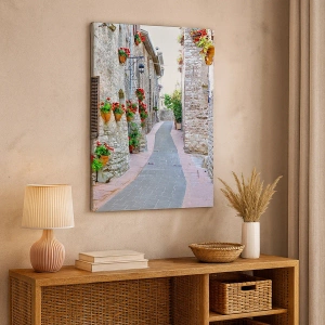 Quadro su tela - Stampe su Tela - Una strada stretta con edifici in pietra decorati con vasi di fiori - 70x50cm - Atmosfera italiana - Decorazione murale moderna per soggiorno e camera da letto ARTTOR
