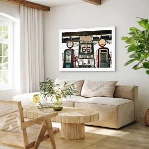 Poster in cornice bianca - Viaggio retro americano - 40x50 cm