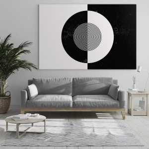 Quadro su vetro - Motivo geometrico di simmetria in bianco e nero - 50x70cm - Armonia in bianco e nero - Decorazione murale moderna per soggiorno e camera da letto ARTTOR