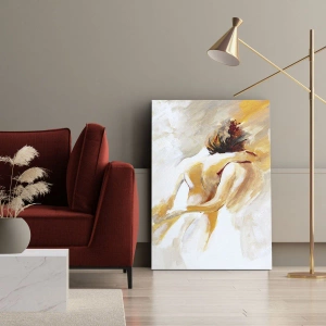 Il dipinto su tela "Scena astratta di un abbraccio romantico" è una decorazione unica che unisce delicatezza e chiarezza espressiva. La scena mostra una delicata composizione di due figure in un abbraccio romantico, decorata in calde tonalità di giallo, beige e bianco, che conferiscono al tutto eleganza e armonia. La forma minimalista e le linee morbide enfatizzano la natura intima del dipinto.