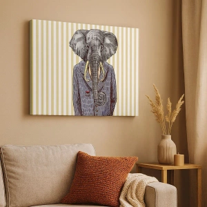 Quadro su tela - Stampe su Tela - Un elefante in abito su uno sfondo di strisce beige - 120x80cm - Elegante di natura - Decorazione murale moderna per soggiorno e camera da letto ARTTOR