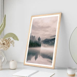 Poster in cornice rovere chiaro - Riflettendo nella nebbia - 50x40 cm