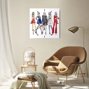 Orologio da parete - Orologio in Vetro - Illustrazioni eleganti di silhouette di moda - 30x30cm - Every week Fashion Week - Decorazione murale moderna per soggiorno e camera da letto ARTTOR