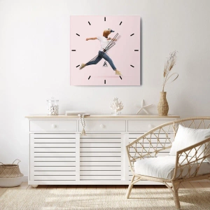 Orologio da parete - Orologio in Vetro - Una figura in movimento con la testa di un uccello su uno sfondo chiaro - 30x30cm - Un pizzico di assurdo - Decorazione murale moderna per soggiorno, cucina e camera da letto ARTTOR