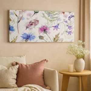 Quadro su tela - Stampe su Tela - Fiori ed erbe acquerellati su sfondo bianco in stile erbario - 70x50cm - Erbario polacco - Decorazione murale moderna per soggiorno e camera da letto ARTTOR