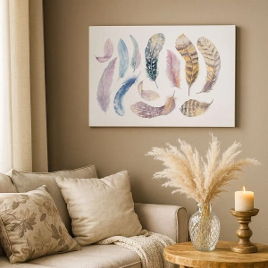 Quadro su tela - Stampe su Tela - Piume colorate in un delicato stile acquerello - 50x70cm - Leggere, variopinte e multicolori - Decorazione murale moderna per soggiorno e camera da letto ARTTOR