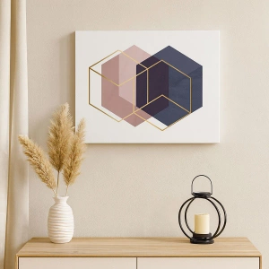 Quadro su tela - Stampe su Tela - Forme geometriche in linee dorate su uno sfondo pastello - 50x70cm - La forza della semplicità - Decorazione murale moderna per soggiorno e camera da letto ARTTOR