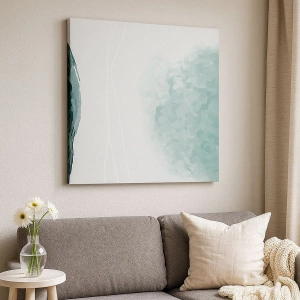 Quadro su tela - Stampe su Tela - Una delicata composizione astratta nelle tonalità del verde, con forme delicate su uno sfondo chiaro. - 160x50cm - Incontro con la nebbia - Decorazione murale moderna per soggiorno e camera da letto ARTTOR
