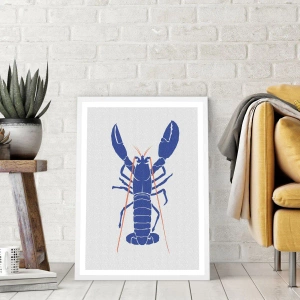 Poster in cornice bianca - Squisita aragosta in blu - 70x100 cm