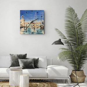 Orologio da parete - Orologio in Vetro - Marina con barche sullo sfondo di una laguna blu - 30x30cm - La laguna assolata - Decorazione murale moderna per soggiorno e camera da letto ARTTOR