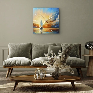 Orologio da parete - Orologio in Vetro - Una barca a vela sullo sfondo del sole al tramonto e delle nuvole colorate - 30x30cm - Navigando nell'oro - Decorazione murale moderna per soggiorno e camera da letto ARTTOR