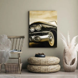 La stampa su tela "Auto d'epoca in stile retrò con dettagli cromati" raffigura un'auto d'epoca retrò della metà del XX secolo, che colpisce per la sua eleganza e i dettagli perfetti. Cromature brillanti e forme aerodinamiche conferiscono alla composizione un carattere unico, trasportando l'osservatore nell'epoca d'oro dell'automobile.