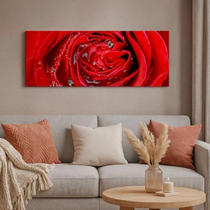Quadro su tela - Stampe su Tela - Primo piano di una rosa rossa con gocce d'acqua sui petali - 70x50cm - Nelle gocce della rugiada - Decorazione murale moderna per soggiorno e camera da letto ARTTOR