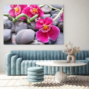 Arte murale - Freddo e Caldo - Orchidee rosa con bambù su pietre