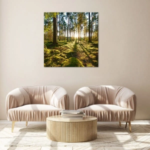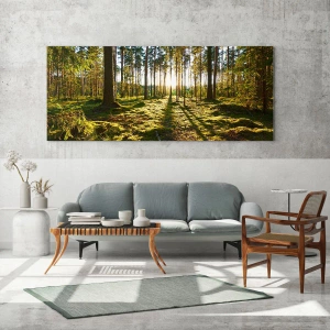 Quadro su vetro - Raggi di sole che penetrano attraverso gli alberi nella foresta - 50x70cm - …dopo sette foreste - Decorazione murale moderna per soggiorno e camera da letto ARTTOR
