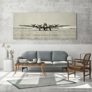 I dettagli presentati della costruzione dell'aereo enfatizzano la precisione e la maestria ingegneristica di quell'epoca. La combinazione di colori seppia conferisce al dipinto un'eleganza senza tempo, che si abbina perfettamente agli stili d'interni industriali o classici.