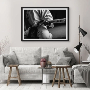 Poster in cornice nera - Samurai con spada in una fotografia in bianco e nero - 50x70cm - L'anima del guerriero - Decorazione murale moderna per soggiorno e camera da letto ARTTOR