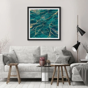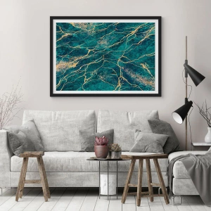 Poster in cornice nera - Venature dorate astratte su uno sfondo di marmo verde - 50x70cm - La vena d'oro - Decorazione murale moderna per soggiorno e camera da letto ARTTOR